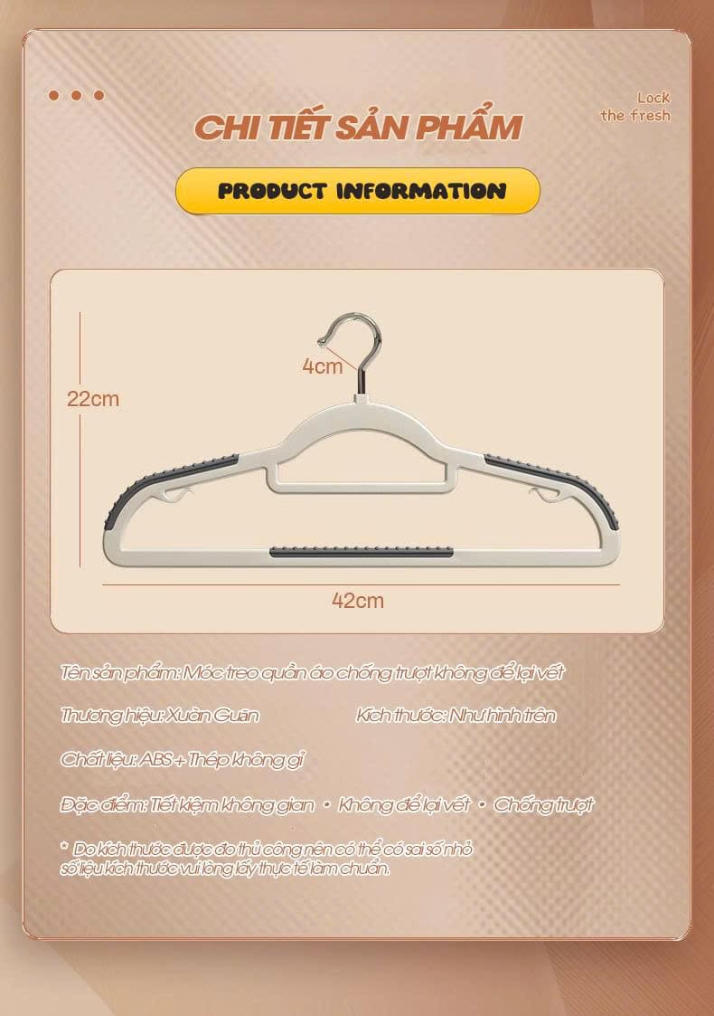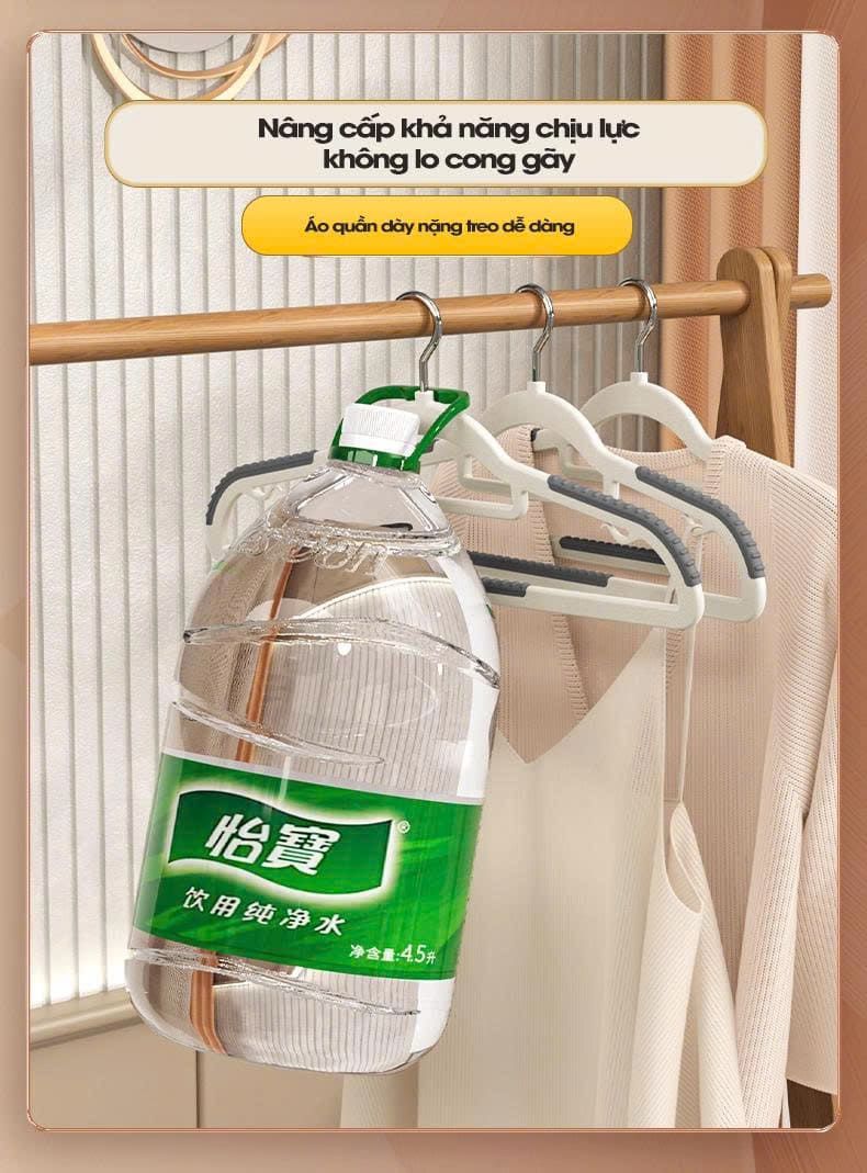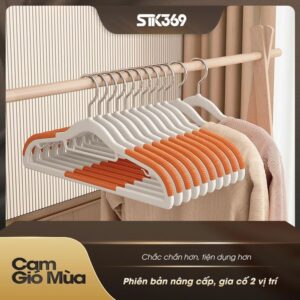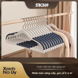 Bạn đang tìm bộ móc treo đồng bộ để tối ưu không gian tủ và giữ áo quần luôn thẳng phom? Combo 10 Móc treo quần áo gia dụng liền mạch chống trượt làm từ nhựa ABS bền bỉ, có lớp cao su chống trượt, chịu lực tốt, dẻo khó gãy, phù hợp cả đồ khô và đồ ướt. Kích thước tiêu chuẩn 21×42 cm dùng được cho áo sơ mi, áo thun, áo khoác mỏng, quần âu và váy dây.
