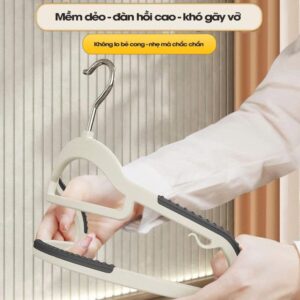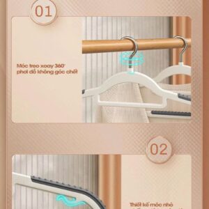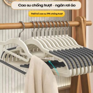 - Chống trượt – không rơi: phủ cao su ở bề mặt tiếp xúc, giữ áo quần cố định khi đóng mở tủ.