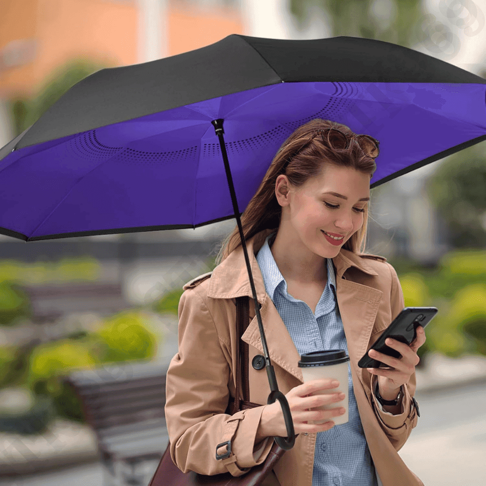 - Gấp ngược khép nước vào trong, giảm ướt tay/sàn khi đóng dù.