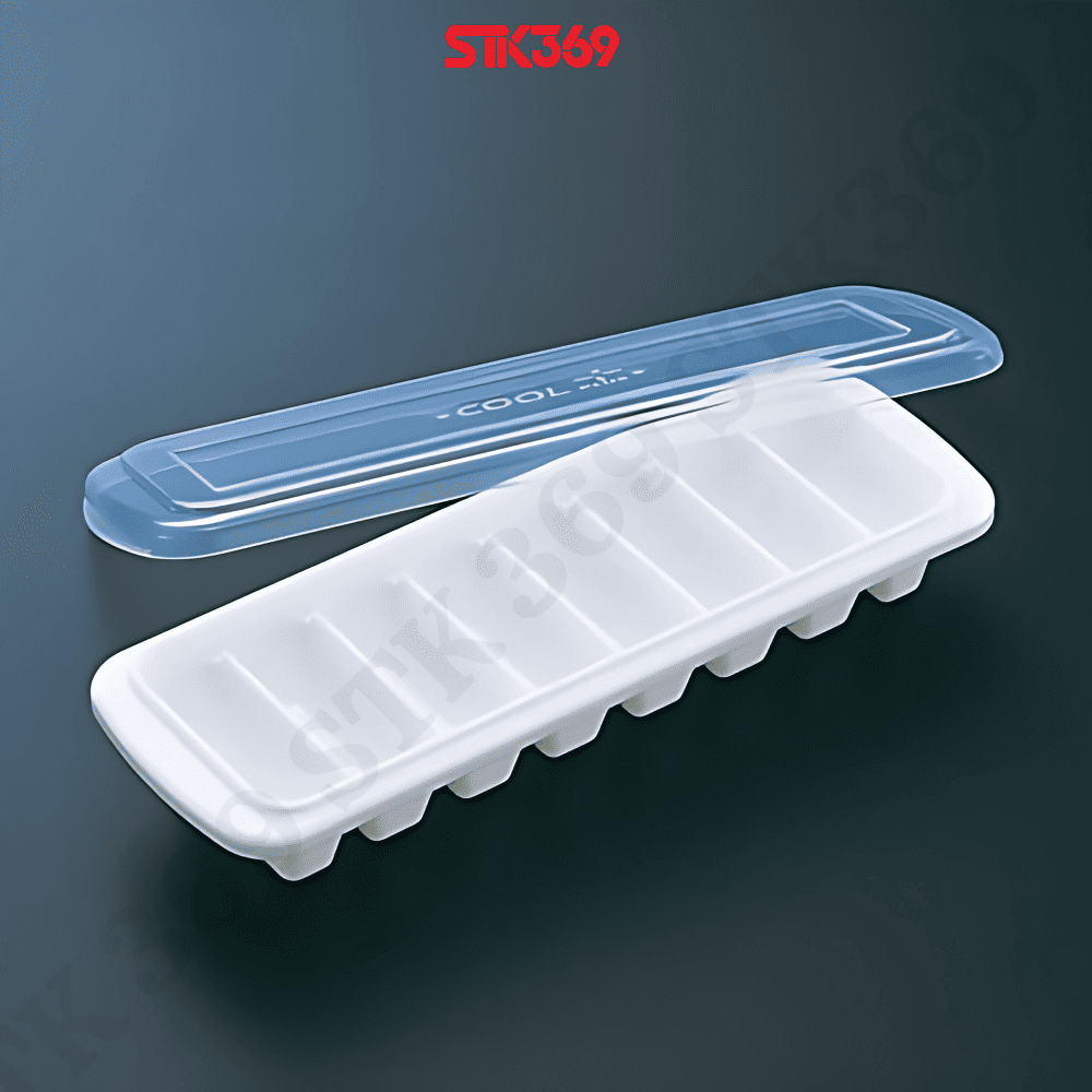 Khay đá thanh 8 viên có nắp bằng nhựa cao cấp, gọn gàng và vệ sinh.