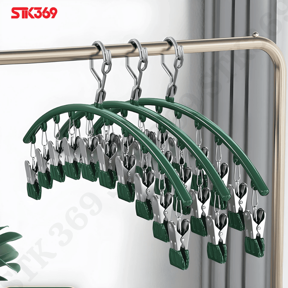 - Công năng: Treo áo + kẹp đồ nhỏ trên cùng một móc.